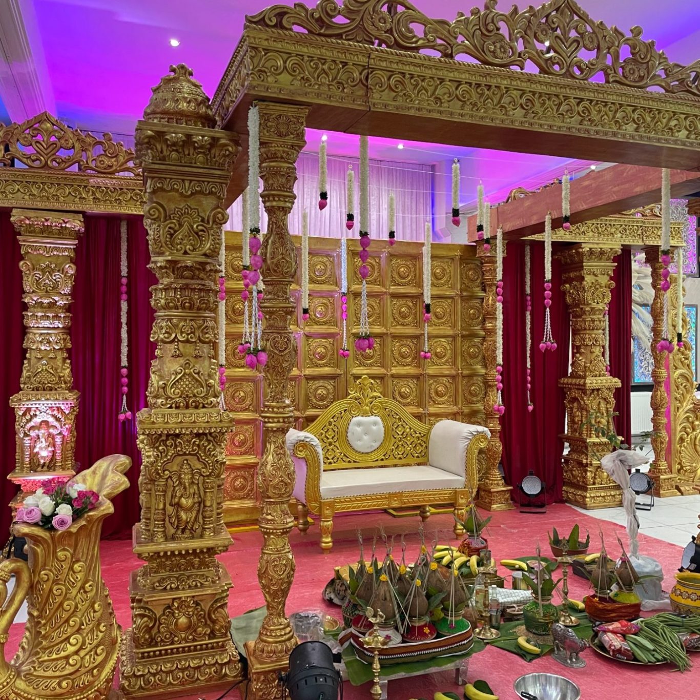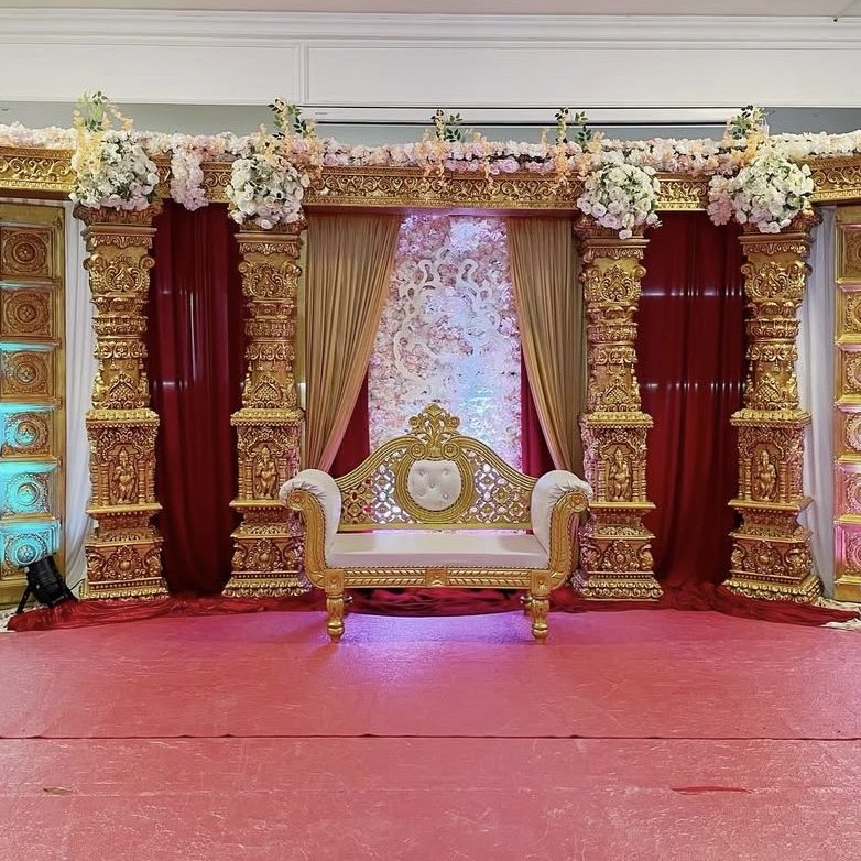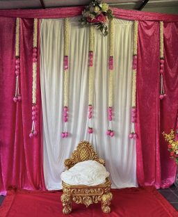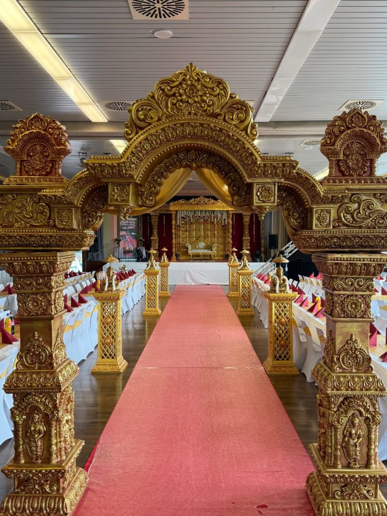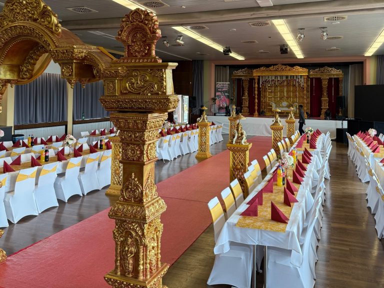 Bei uns können Sie auch sämtliche Deko‑Artikel mieten, die Ihr Event benötigt – von Bestuhlung, Brunnen und hochwertiger Blumendeko bis hin zu traditionellen Elementen wie dem Nirakudai‑Set. Alles aus einer Hand, flexibel kombinierbar und perfekt abgestimmt auf Ihren Anlass.